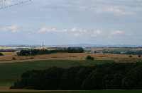 Der knapp 430 m hohe Landberg kann als "Nordpfeiler" des Ost-Erzgebirges angesehen werden. Nur wenig nördlich des Basaltdeckenergusses schließt sich das Nossen-Wilsdruff-Tharandter Schiefergebirge an, überlagert von eiszeitlichen Lößlehm-Schichten. Auch die zusammenhängende Waldbedeckung des Tharandter Waldes endet hier, und vom "Gasthaus zum Landberg" bzw. von der ganzen Straße nach Spechtshausen ("Mühlweg") aus öffnet sich ein weiter Blick ins Mulde-Lößhügelland bzw. Mittelsächsische Lößhügelland. Fast die gesamte Fläche ist eben und wird landwirtschaftlich genutzt, soweit sich nicht Siedlungen ausbreiten. Direkt zu Füßen des Landberges erstreckt sich der Golfplatz Herzogswalde. Hinter dem Ort fällt das Waldgebiet der Struth auf, ein alter Restwald in der ansonsten fast völlig gerodeten Landschaft. Links hat sich die Triebisch in die etwa 300 m hohe Lößebene eingeschnitten, deutlich an den bewaldeten Hängen zu erkennen. Ganz rechts hingegen befindet sich der Freitaler Kessel, wo sich die Wilde Weißeritz im Rotliegenden - dem Abtragungsschutt des "Ur-Erzgebirges" (Erzgebirgssattel des Variszischen Gebirges) - gründlich Platz geschaffen hat. Davor, etwa vier Kilometer vom Landberg entfernt, entspringt oberhalb von Grumbach der Schloitzbach und fließt nach Süden in Richtung Tharandt, während von Pohrsdorf her die "Wilde Sau" kommt und über Grumbach und Wilsdruff nach Nordwesten fließt. Wahrscheinlich noch im frühen Quartär, vor weniger als zwei Millionen Jahren, floss in dieser Senke die Wilde Weißeritz. Derweil nagte sich damals aber ein anderer Bach, der beim heutigen Dresden in die Elbe mündete, von Nordosten her ins weiche Gestein des Rotliegenden ein, bis seine Quelle dem alten Weißeritzlauf ganz nahe kam und schließlich den Erzgebirgsfluß nach Nordosten umlenkte (Tharandter Weißeritzknick). Auch Erdkrustenbewegungen der jüngsten geologischen Vergangenheit spielten dabei eine Rolle. Alte Flussschotter bei Großopitz künden noch heute von diesen Ereignissen.