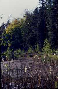 Nicht minder bedeutungsvoll als das Moor selbst ist die Baumschicht. Es handelt sich wahrscheinlich um einen natürlichen Fichten-Kiefern-Mischwald. Eigentlich ist die Fichte in Mitteleuropa von Natur aus eine Art des Berglandes und wäre auf "normalen" Standorten in 340 m Höhenlage nicht konkurrenzfähig. Doch die besonderen Bedingungen eines nassen, nährstoffarmen und frostgefährdeten Standortes lassen anderen Baumarten hier kaum eine Chance, außer den anspruchslosen Fichten - neben Kiefern und Moorbirken. Zwar wurde nachweislich auch hier am Westhang des Borschelsberges im 19. und Anfang des 20. Jahrhunderts der Wald kahlgeschlagen und neu aufgeforstet. Doch nimmt man an, dass sich dessen ungeachtet die autochthonen (also hier heimischen) Bäume wegen ihrer besseren Anpassung an die harschen Standortbedingungen als Naturverjüngung durchgesetzt haben. Da seither kaum noch Eingriffe erfolgten, hat sich ein sehr naturnahes Waldbild erhalten können. Seit 1978 steht das Gebiet deshalb als Flächennaturdenkmal "Tieflagenfichtenwald" unter Naturschutz. Die ebenfalls vertretene Weymouthskiefer allerdings stammt aus Nordamerika und ist künstlich eingebracht.