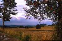 Der Rand des Kohlberges bietet weite Ausblicke über das nordöstliche Ost-Erzgebirge. Man kann den Verlauf der Lockwitz verfolgen, wie sie sich in die Gneishochfläche eingeschnitten hat, bevor sie rechts neben dem Wilisch durch die "Wendischcarsdorfer Verwerfung" hindurch das Erzgebirge verlässt und dahinter, wo im Dunst der Dresdner Talkessel zu erkennen ist, der Elbe zuzufließen. Die Gneishochfläche ist nicht eben sondern doch ziemlich strukturreich. Zum einen verursachen dies die kleinen Nebenbäche, zum anderen der erwähnte Sayda-Berggießhübler Porphyr-Gangschwarm. Aufgesetzt auf der Gneishochfläche thront rechts die Basaltkuppe des Luchberges.