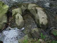 Bemerkenswert sind zwei Flussabschnitte der Roten Weißeritz mit mehr oder weniger gut erhaltenen Relikten von so genannten Strudeltöpfen. Damit diese entstehen können, sind einige besondere Konstellationen notwendig. An der Gewässersohle muss relativ erosionsbeständiges Gestein anstehen. Durch Verwirbelungen im Wasser können Sand, Kies und Steine anfangen zu rotieren. Dies muss auf engem Raum und über längere Zeit geschehen. Dadurch werden in den Felsuntergrund erst muldenförmige und später kessel- oder topfförmige Vertiefungen eingeschliffen. Bleiben einzelne Gerölle längere Zeit in diesem Strudeltopf, so können diese vollkommen kugelig und glatt geformt werden. Diese abgerundeten Gerölle werden als Strudelkerne bezeichnet. Zu finden sind diese geologischen Zeugen vergangener Zeiten (keiner dieser Strudeltöpfe ist mehr aktiv) ca. 500 Meter südlich der ehemaligen Felsenmühle Spechtritz (Ruine), sowie ca. 500 Meter nördlich des Haltepunktes Spechtritz an einer markanten Flussbiegung. Hier queren jeweils steil einfallende Felsrippen das Gewässerbett, mit zahlreichen Resten von Strudeltöpfen. Der am besten und fast vollständig erhaltene Strudeltopf von etwa einem Meter Durchmesser befindet sich im südlichen Vorkommen direkt am westlichen Ufer und kann vom Talweg aus sehr gut eingesehen werden.
