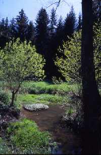 Obwohl unterhalb der Heidemühle kein Weg dem Oelsabach folgt, lohnt sich vor allem im Frühling ein Abstecher dahin. Das Bächlein mäandriert mit schmalem Erlensaum teilweise über eine kleine Auenwiese, teilweise durch lichten Waldbestand. Durch die Filterwirkung der Teiche und wegen des Zuflusses aus sauberen Heidequellen ist das Wasser außerordentlich klar und sauber. Im Kies kleiner Kolke kann man die Larven von Köcherfliegen (mit Steinchen oder Pflanzenteilen besetzte, langsam dahinkriechende Röhren), Eintagsfliegen (drei Schwanzfäden) und Steinfliegen (zwei Schwanzfäden) beobachten. Im Mai/Juni ist die Hauptblütezeit des weißen, im Bach treibenden Wasserhahnenfußes.