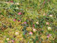 Wo noch kleinere nasse Senken vorhanden sind, findet der Besucher zwischen den bestandesbildenden Torfmoosen Moosbeere, Trunkelbeere und an wenigen Stellen auch Sonnentau. Um die Trunkel- oder Rauschbeere ranken sich Berichte, schon der Genuss einer kleinen Menge würde in Rauschzustände versetzen. Nach neueren Erkenntnissen soll dieser Effekt nicht durch die Früchte selbst, sondern durch einen Pilz an deren Oberfläche hervorgerufen werden. Im Erzgebirge scheint dieser Pilz allerdings weniger zuhause zu sein. Davon abgesehen ist in einem Naturschutzgebiet selbstverständlich auch das Pflücken der verlockenden Beeren von Kleinsträuchern nicht gestattet.