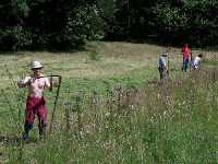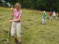 Hallo Sigmar, hallo Christoph! Lange nicht gesehen - das letztemal beim letzten Heulager. Wie geht's? Und wer seid ihr? Ähm, yes, I do, a little. From Australia, really? Welcome to hay camp! We are mowing meadows with ... Mist, was heißt denn "Sense" auf Englisch?
