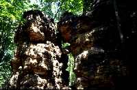 Am Oberhang der Karlsleite breitet sich eine kleine Hochfläche aus. Die Naturausstattung ist völlig anders. Hier liegt Sandstein auf, dessen Härtlingsreste sich in einer Felsengruppe mit zehn bis zwanzig Metern Höhe zeigen. Das größte Felsengebilde, der namengebende "Hochstein" (423 m NN) ist ein kleiner Tafelberg mit ca. 300 m² zergliederter, ebener Fläche. Durch Baumaufwuchs ist vom Felsplateau leider nur noch beschränkte Sicht in Richtung Elbtal gegeben. Ein prächtige "Bonsai-Kiefer" sitzt dem Felsen auf und verdeutlicht Auswirkungen von Wind, geringem Feuchtigkeits- und Nährstoffangebot.