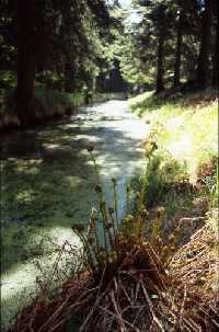 Reichlich 250 Jahre zuvor schon hatte der Freiberger Ressourcenhunger schon einmal dazu geführt, das Wasser der Flöha abzuzweigen. Damals ging es allerdings um Holz, der zweite wichtige Energieträger früherer Zeiten. In der ersten Hälfte des 17. Jahrhunderts wurde der "Neue Floßgraben" angelegt, auf dem Holzscheite zunächst in die Freiberger Mulde und über diese dann nach Freiberg geflößt werden konnten. Auch der Anfangspunkt dieses Meisterwerkes damaliger Vermessungskunst ist mittlerweile in einem Stausee verschwunden, nämlich der Fláje-Talsperre. Doch die ersten Kilometer des Grabens wurden zu Beginn des 21. Jahrhunderts von einer Bürgerinitiative wieder hergestellt. Heute können Besucher das technische Denkmal entlang eines Wanderweges bewundern (Trittsicherheit und gutes Schuhwerk sind allerdings zu empfehlen!). Kurz vor Georgendorf stürzt das Wasser in Kaskaden über 70 Meter den Hang hinab.