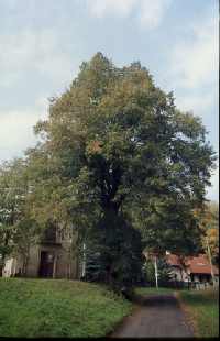 Zu Füßen der Burg, in einer kleinen Weitung des Tales, befinden sich einige Häuser des Oseker Ortsteiles Hrad Osek/Riesenberg. Auch eine Streuobstwiese mit uralten, knorrigen Bäumen hat Platz gefunden. Besonders bemerkenswert ist eine ca. 300 Jahre alte Winter-Linde neben einer kleinen, 1721 errichteten Barock-Kapelle. Der Baum ist 22 Meter hoch, hat einen Stammumfang von rund vier Metern und steht als Naturdenkmal unter Schutz.