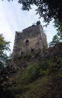 Ein Weg führt zu den alten Mauern. Aber Vorsicht! Das Mauerwerk ist locker, zwischen den überwucherten Ruinen stecken nicht erkennbare Hohlräume, von den Mauerkanten geht es teilweise steil in die Tiefe, und es kommt auch vor, dass von oben Steine herunterpoltern.