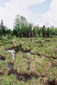 Entwässerung, Torfstecherei und Immissionen prägen das Gebiet heute ganz erheblich. Alle Torfkörper sind stark degradiert, sehr trocken und damit überwiegend waldfähig. Das Alter der Fichtenbestände überschreitet kaum 40 Jahre. Sie können je nach Standort den Wollreitgras-Fichtenwäldern (nährstoffreichere Torfe) bzw. Fichten-Moorwäldern (arme Torfe) zugeordnet werden. Die auffälligen Birkenbestände gehen maßgeblich auf das Engagement des Revierförsters Helmut Kluge (Dienstzeit 1963 - 1990) zurück, der in einem damals ungewöhnlichen Ausmaß gezielte Schneesaaten vornahm, um den Wald zu erhalten. Teils entwickelten sich die Birkenbestände auch spontan. In allen Fällen handelt es sich um Pionierwälder, entweder auf Standorten von Wollreitgras-Fichtenwäldern oder - als sekundärer Birken-Moorwald - von Fichten-Moorwäldern. Einen schönen Anblick bieten sie trotz alledem. Im Frühjahr ergibt das hell leuchtende, frisch ausgetriebene Grün der Heidelbeeren und Birken, zusammen mit den weißen Birkenstämmen und einem blauen Himmel, eindrucksvolle Waldbilder.