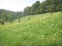 Die kleinen Rodungsinseln an der Schweinitz wurden aufgrund ihrer abgelegenen Lage und ihrer geringen Flächengrößen zu DDR-Zeiten weniger intensiv bewirtschaftet als andere Grünlandgebiete. So konnten sich vor allem bei Oberlochmühle, Deutschneudorf, Brüderwiese und Deutscheinsiedel noch einige schöne, artenreiche Bergwiesen erhalten. Im Mai/Juni blühen hier u.a. die typischen Arten Bärwurz, Alantdistel, Rundblättrige Glockenblume und Margerite, seltener auch Weicher Pippau, Zittergras, Berg-Platterbse und Heide-Nelke.