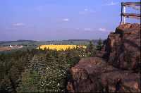 Auf dem Abstieg vom Burgberg in Richtung Burkersdorf läuft man zwar durch Nadelforste, bemerkt aber recht deutlich, wann man den Quarzporphyrrücken verlässt und wieder Gneisboden betritt: hochwüchsiges Fuchs-Kreuzkraut, reichlich Brom- und Himbeeren sowie viele weitere Pflanzen zeigen die kräftigere Nährstoffversorgung an.