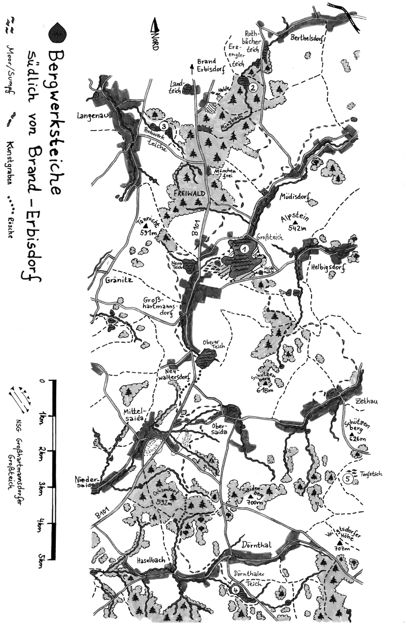 Aufgrund seiner fruchtbaren Gneisverwitterungsböden wird das Gebiet zwischen Brand- Erbisdorf und Dittmannsdorf seit seiner Besiedlung vorrangig landwirtschaftlich genutzt. Der Grünlandanteil ist heute verhältnismäßig hoch. Es gibt viele artenreiche Feuchtwiesen in den Wassereinzugsgebieten der Bergwerksteiche. Neben ihrer Funktion als Wasserspeicher (insgesamt etwa 5 Millionen m³ Speicherraum), die dem Bergbau eine Energiereserve von ungefähr einem Vierteljahr boten, dienten die Teiche von Anfang an auch der Fischzucht, vorrangig der Karpfenaufzucht.