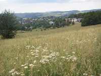 Die meisten Landwirtschaftsflächen werden seit langer Zeit vorrangig als Grünland bewirtschaftet. Auf den traditionell durch Mahd genutzten Flächen wie am Goldhübel nordöstlich von Neuhausen, im oberen Frauenbachtal, an den Hängen des Schwartenberges, bei Oberseiffenbach sowie in den Rodungsinseln entlang der Schweinitz (z.B. Oberlochmühle, Brüderwiese) gibt es viele artenreiche Bergwiesen, die örtlich in Nasswiesen übergehen. Hier finden wir Arten der Feucht-, Frisch- und der Bergwiesen oft in enger Verzahnung. Unter anderem sind hier Wiesen-Knöterich, Verschiedenblättrige Distel, Weicher Pippau, Kleiner Klappertopf, Berg-Platterbse, Wiesen-Platterbse, Bärwurz, Echtes Mädesüß, Wiesen-Margerite und Gräser wie Goldhafer, Wolliges Honiggras und Gewöhnliches Ruchgras zu finden. Im Rahmen einer Bergwiesenerfassung wurden 44 Hektar kartiert, von denen reichlich 17 Hektar die Kriterien eines "Besonders geschützten Biotops" (nach §26 des Sächsischen Naturschutzgesetzes) erfüllen. Dies ist ziemlich viel und unterstreicht die Verantwortung der Region zur Bewahrung dieses wertvollen Erbes.