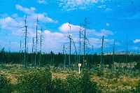 Solche SO2-reichen Abgase schwappten in immer größeren Mengen über den Erzgebirgskamm. Besonders große Konzentrationen traten dabei auf den Gebirgspässen auf. Der Schwerpunkt der Waldschäden lag im Deutscheinsiedler Raum, denn bei Südwind-Wetterlagen ergossen sich die Schadstoffe über den Einsiedler Pass. Ab Ende der 1970er Jahre fielen dann überall am Kamm des Ost-Erzgebirges die Fichtenforsten dem Waldsterben zum Opfer.