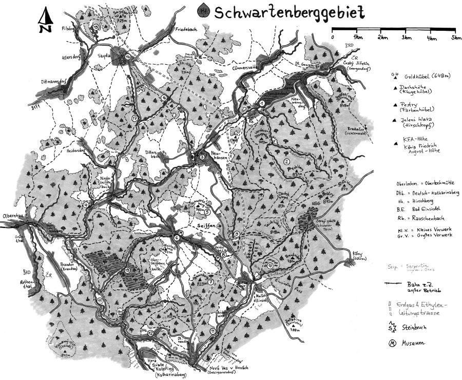 · der "Göhrenweg" von Deutscheinsiedel nach Klíny/Göhren. Hier hatte bereits 1355 eine Kapelle existiert, die dem Hl. Wenzel geweiht war (St. Wenzelsberg/Hora Sv. Václava).